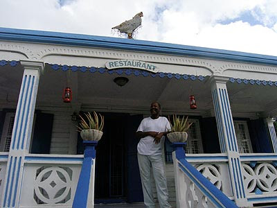 Five days later as I headed back to the airport I stopped by and said good-bye to Tony Romney and took this picture. He remarked about how much more relaxed and how much healthier I looked from the first time I saw him. He was correct. If you get to the east side of the island are near Orleans section look for Poulet d’Orleans ”“ Creole Restuarant above the hairpin turn. You will not be disappointed by the atmosphere the hospitality or the food.